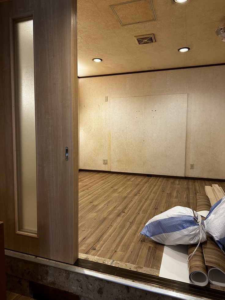 壁はボランティアさんに協力してもらって自分達で貼ります。