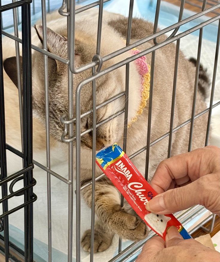 会場にチュールがある事に気づいたポッポちゃん‼︎ここぞとばかりおねだりをしてました。