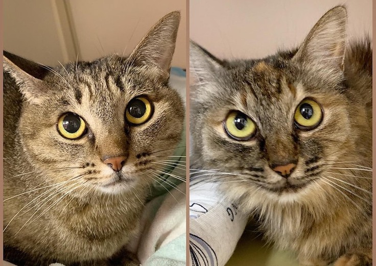 『プラム』ちゃんには『いちご』ちゃん(写真左)という姉妹猫さんがいます。推定2014年秋生まれ。生後半年くらいの2015年春にふたり一緒に保護されました。