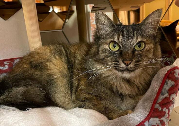 先日、お見合いをして卒業が決まっていたキジトラ長毛の美貌の『プラム』ちゃん。昨日営業終了後に無事、お引越を完了致しました!