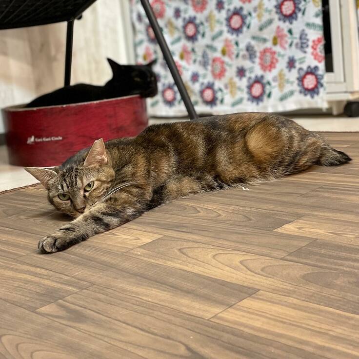 日向ぼっこを猫たちにさせたい!という思いの中には、彼女たちのように入居期間が長くなっていて、しかもソファの下の住人というコ達にも良い住環境を与えたいということがありました。