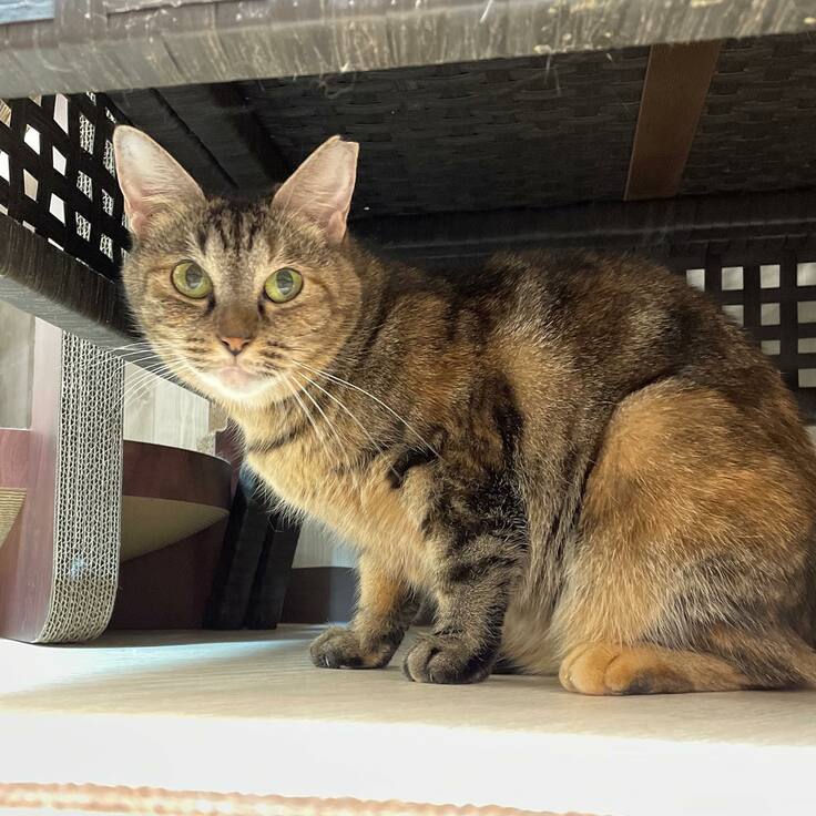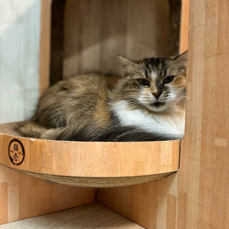 成猫に特化した保護猫カフェは、鮮やかにポンポン譲渡が進むわけではありません。でも譲渡会に参加することさえ難しいくらいの恥ずかしがり屋さんで、ただただ一般の家庭で年を重ねてゆくよりは、ここにいるほうが譲渡のチャンスは高いと考えての入居でした。