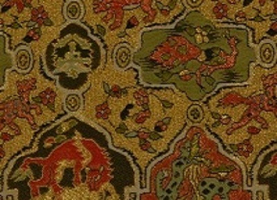 元々は秀吉公に献上された敷物(ペルシャ絨毯)を陣羽織に仕立てたものが高台寺に伝わっています。獅子や鹿、獅子が獲物に襲いかかる文様が見られ、小さいながらも桃山時代の美を感じることのできる織物でできた台袱紗です。