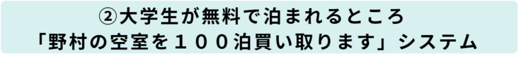 <大学生が無料で泊まれる「野村の空室を100泊買い取り」システム>