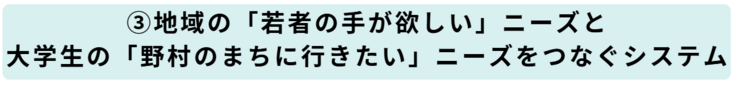<地域の「若者の手が欲しい」ニーズと大学生の「野村のまちに行きたい」ニーズをつなぐシステム>