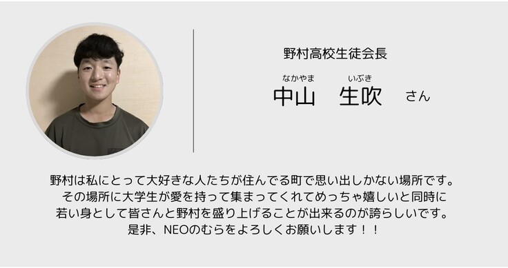 私たちは一般社団法人「NEOのむら」学生チームです。