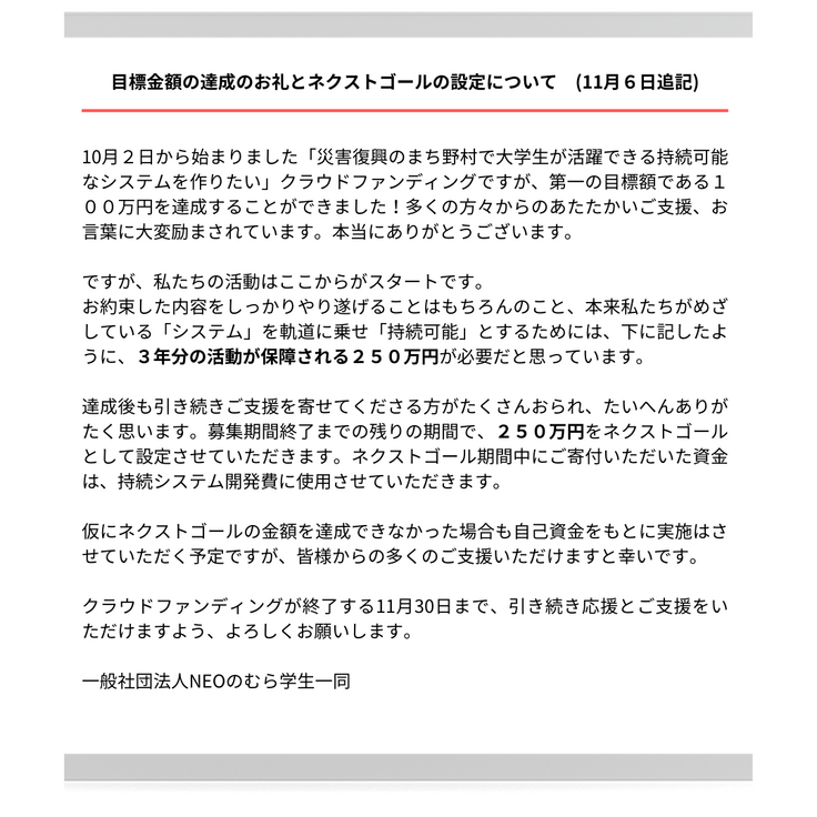 ぜひともクラウドファンディングをとおして事業の支援をしていただくことを切に願います。