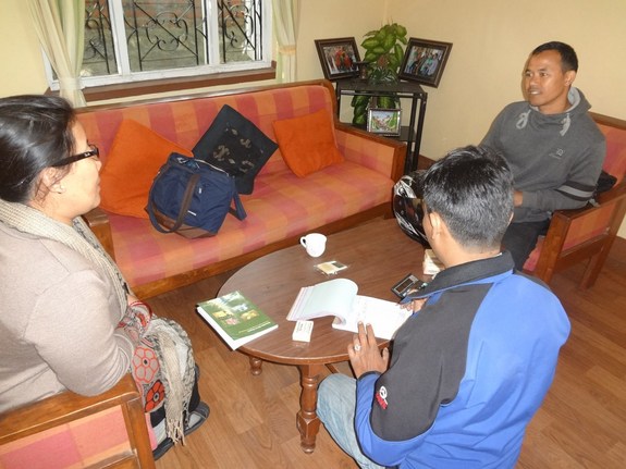 本日2014年12月2日バッテダンダ村女性農業組合の代表代理アカス特派員がカトマンズにやってきて、トゥルシに関する市場調査をしました。