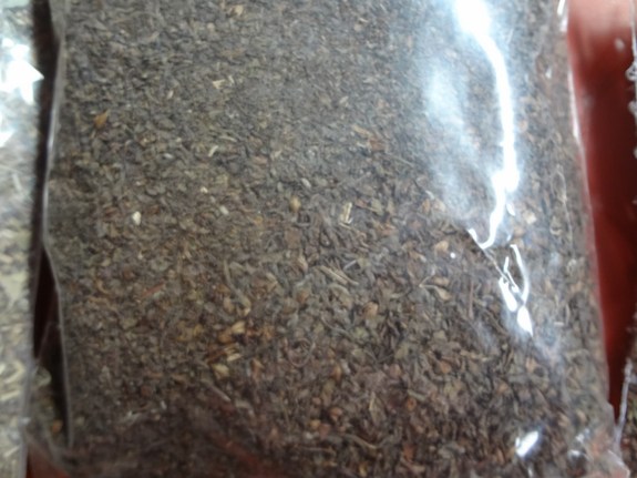 こちらは一般に流通しているトゥルシ茶葉です。茶葉ではなくダストの寄せ集めのような感じです。