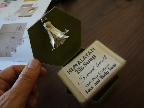 石鹸を入れるなら、四角のものを特注した方がよさそうですね。四角なら石鹸も入るし、茶葉も入れることができます。一つの箱でいろんな使い道が考えられます。このアイディアもアカス特派員は気に入っていました。早速村に帰ってから組合員と一緒に相談したいと言っていました。
