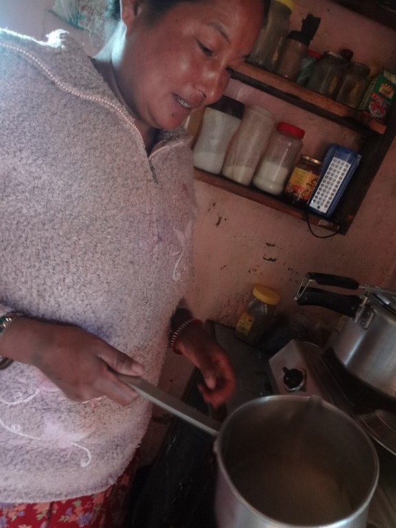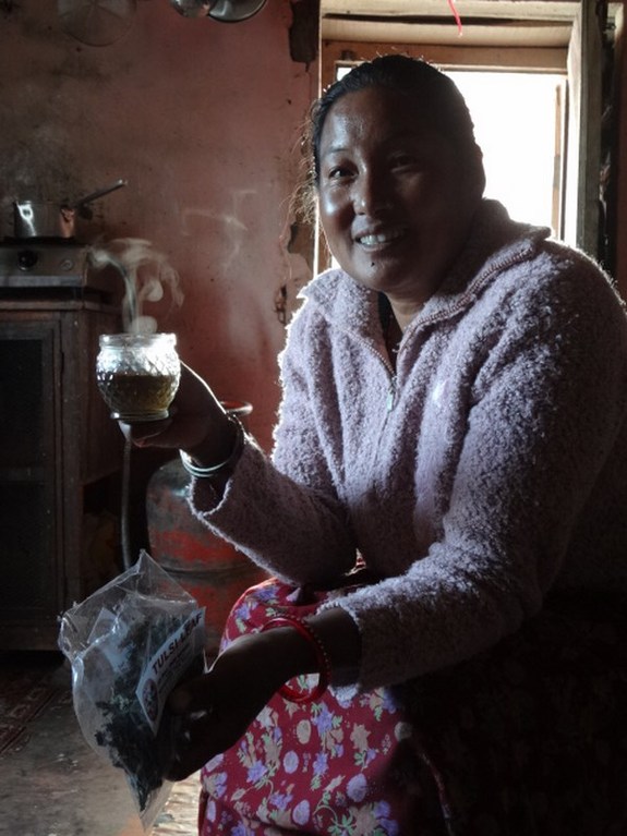 自分たちの畑でとれた自家栽培のトゥルシ茶がカトマンズで売られている