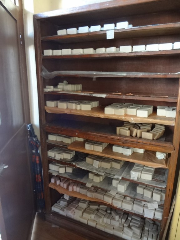 こちらはお客さんの注文のサイズに石鹸をカットした時に出る半端石鹸を
