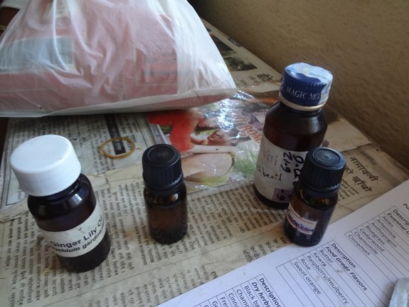 スゥイートバジルエッセンシャルオイル以外に私が持ち込んだ2種類のフラワーエッセンシャルオイルを配合して独自の香りを作ってもらいます。