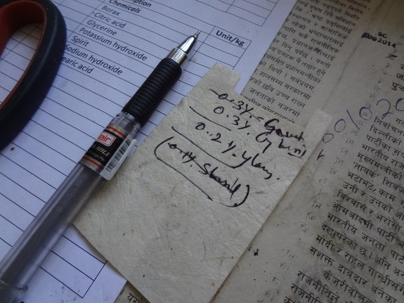 制作リストに配合率や個数などを細かく書き込んでいる石鹸マスター。