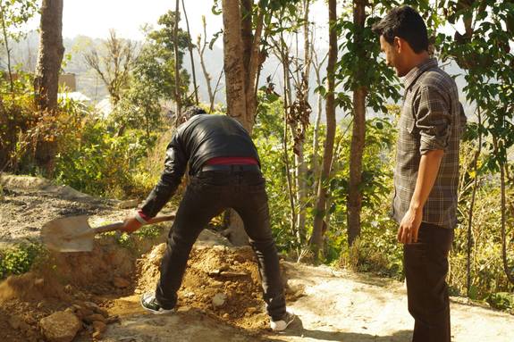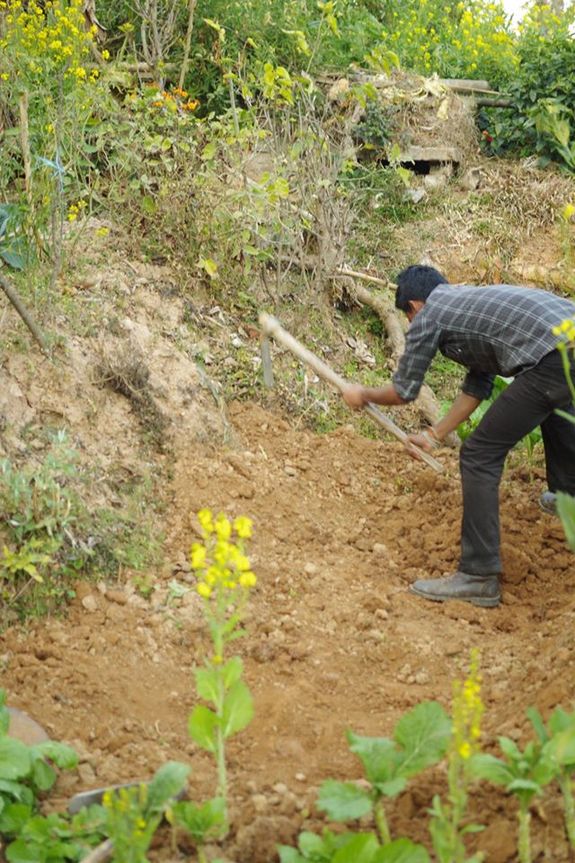 一緒に村を周り穴掘りを手伝いながら、彼らが大学で習った農業の知識を彼女たちにわかりやすく説明していました。