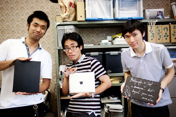 写真に写っている広島大学の西井さん、領家さんには色々お世話になりました。領家さんのMacBookAirにサインを入れて三人で記念撮影。