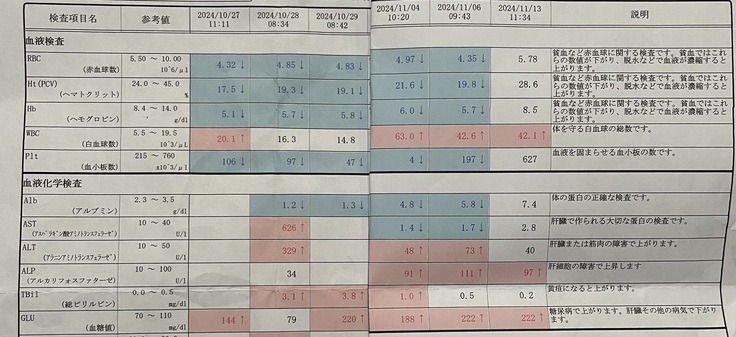 →11/13の最新の数値では、ほとんどの数値が以前に比べて基準値に近づいてきているので改善傾向かと思われます❤️🩹