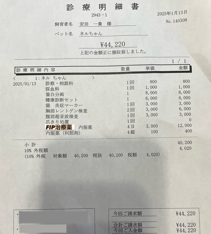 FIP治療薬を終了していいか否かの判断が下る総合的な検査をしてきました!