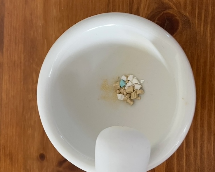 抗生物質や大きい錠剤(鉄剤を砕いたもの)の投与が必要で、夜も薬を飲んでいました。