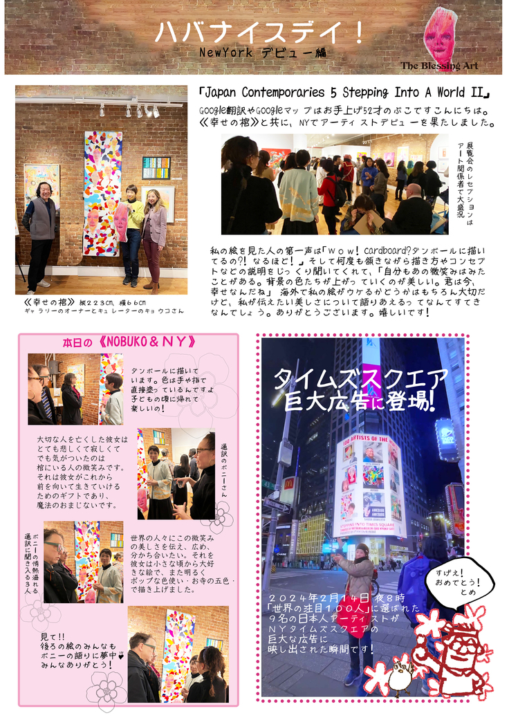 ニューヨークから帰って1ヶ月経ちました。少しずつですが、これからのアートとの向き合い方や、アートと私がどうやって歩いて行こうか、など形が見えてきていてワクワクです。