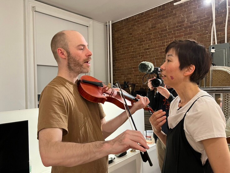 伴奏はNYで活躍中のCleek Schreyさん。ダクソフォンやバイオリンでの即興音楽やインスタレーションのプロフェッショナルです。私のパフォーマンスの雰囲気を見事に盛り上げてくれました。