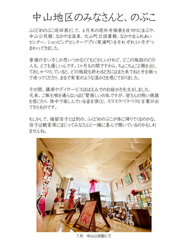 2024年のアーティスト代表として第17回大山町総合文化祭に出展して最高の2日間を過ごしたという余韻を楽しんでいるのぶこですこんにちは😊いつもありがとう!