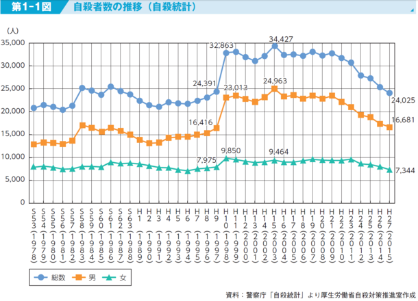 年間の自殺者が3万人を超え常態化したのもこの時からです。