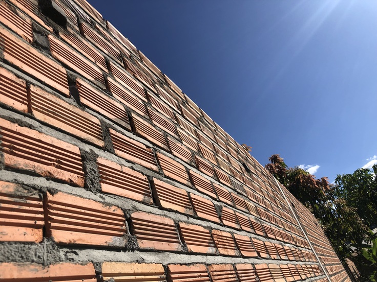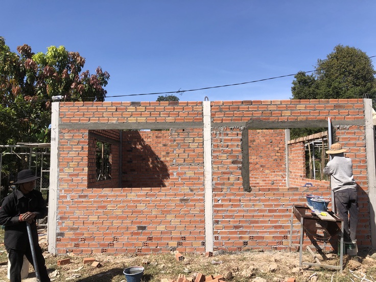 そこから柱を立て、外壁をレンガとセメントでツムツムしていきます。