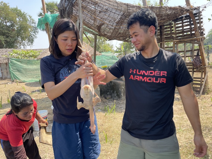 「命をいただくという体験や村の人の生き方を知ることを通して、今後の人生観に繋がる経験をできたと思いました。世界一周をしてだいぶ体勢がついて、絞めるのを目の当たりしてもスッと受け入れられました。以前だったら見れなかったと思います。」と奥さまのあやさん。
