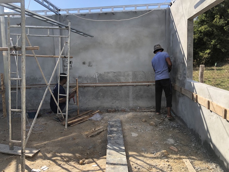 前回はセメント塗り塗りと屋根の骨組みの施工まででした。