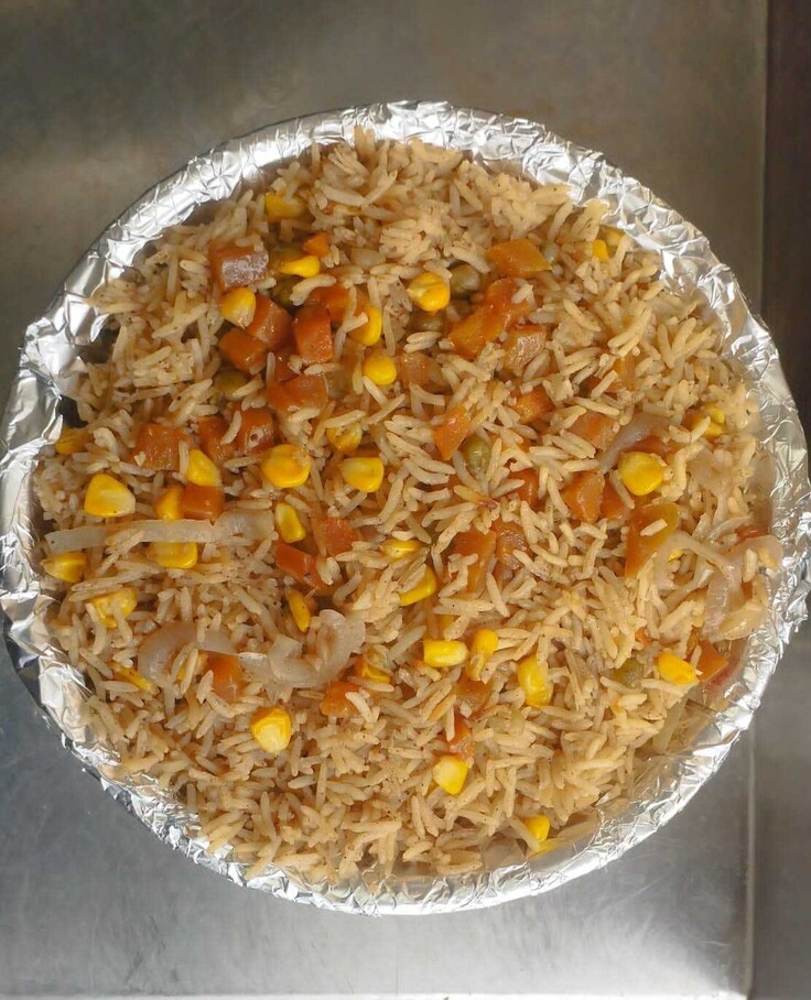 にんじん、コーン、玉ねぎ、豆などを、ガザ地区でもよく食べられるスパイスで味付けしたお米に混ぜ込んでいます。少しでも温かいまま持って行ってもらえるよう、アルミニウムで包んでお配りしています。