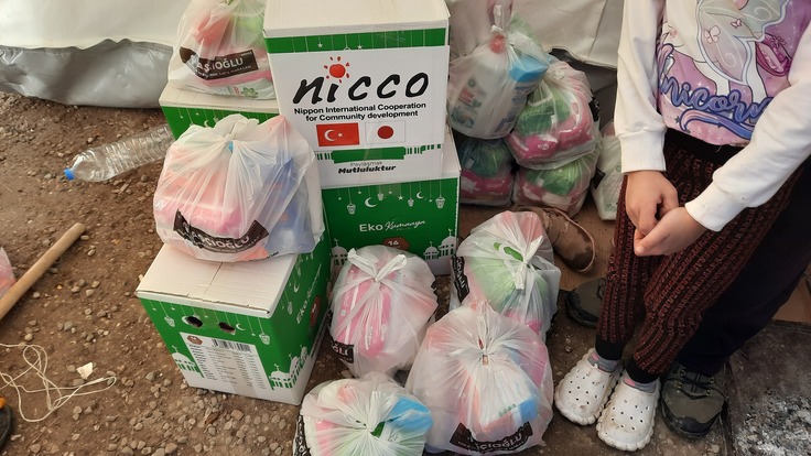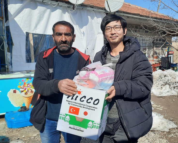 NICCOは政府機関や現地NGO、自治体と協議をして、被災者のニーズを把握し、マラティア県アクチャダー市の村々で特に支援を必要としている家庭に物資を届けました。