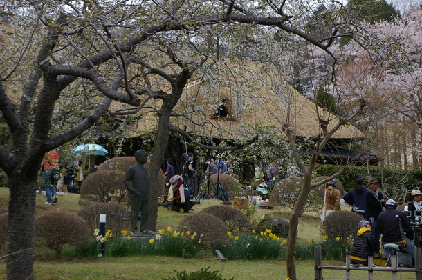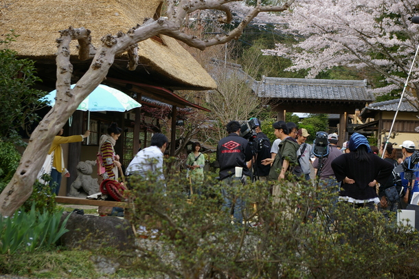 地元のエキストラさんが出演したり、夜はクレーン車のような照明車が