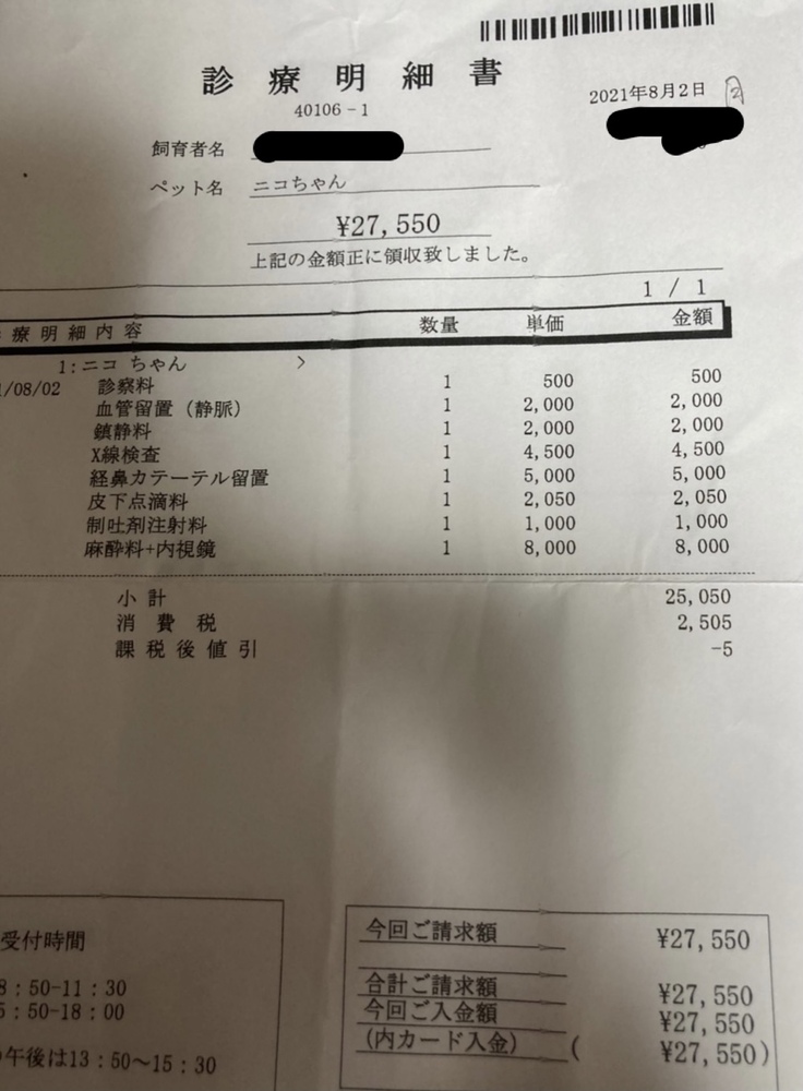 検査にはいくらかかるかは分からないが、数十万円は見積もっておいた方がいい。』と言われ、母とどうすればニコの為になるかを考えました。