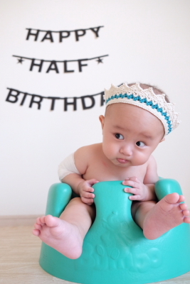 (ハーフバースディの時にはどんぐり帽子の会で教わった編み物でクラウンを