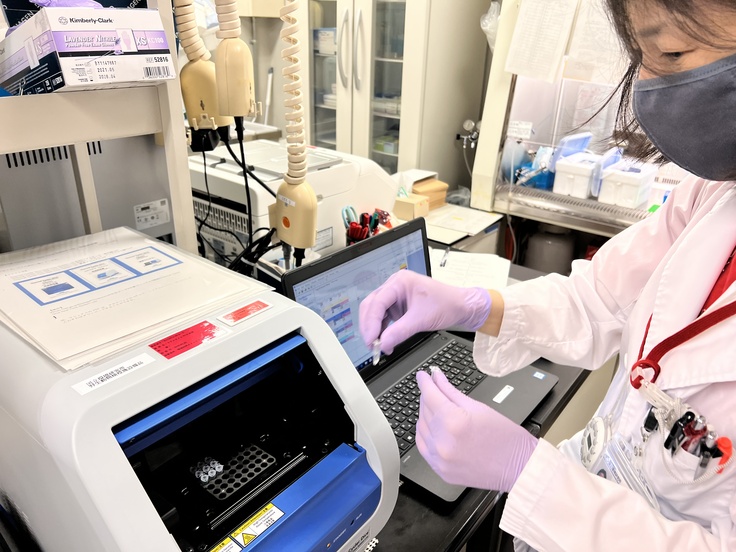 遺伝子を検出するリアルタイムPCRという装置に、それぞれの感染症にあった設定をインプット、、、