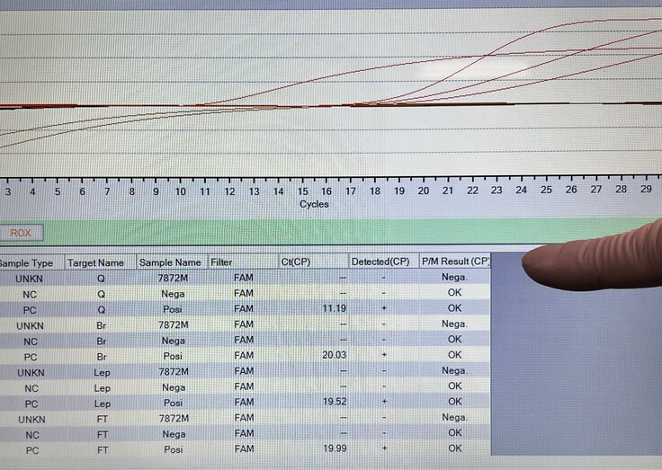 解剖の次は、運ばれてきた個体が感染症にかかっていないかのチェックを進めます。