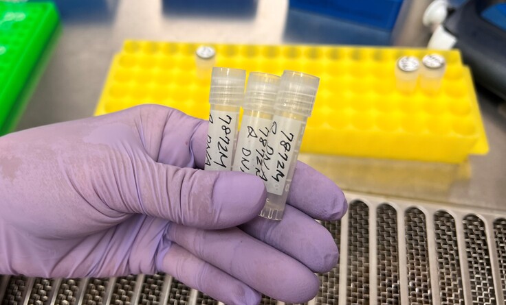 細胞だけでなく、先ほど抽出したDNAも凍結保存用に確保。安全のために同じサンプルを3セット分けて用意しておきます。