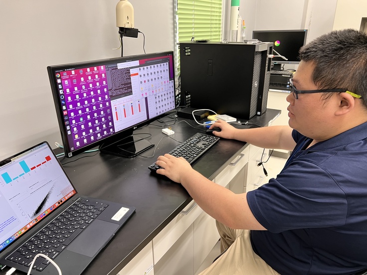 次世代シーケンサーが読み取ったDNA配列の断片データをPCに入れ、カンムリワシのすべてのDNAがどんな配列で並んでいるかをパズルのように整理していきます。
