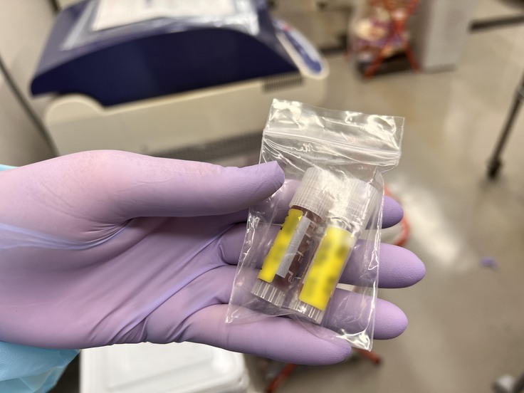 死亡個体が届く場合もあれば、写真のようにチューブに皮膚、筋肉、卵巣・精巣が入ってくることも。
