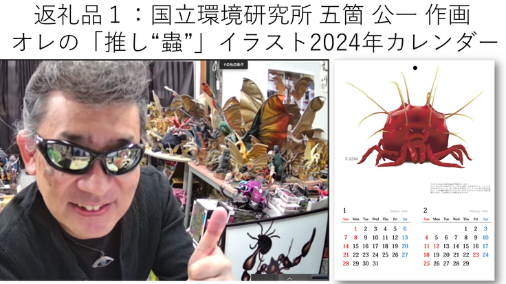 【返礼品追加1】外来種研究でお馴染み 五箇公一作画の「推し”蟲”」2024カレンダー
