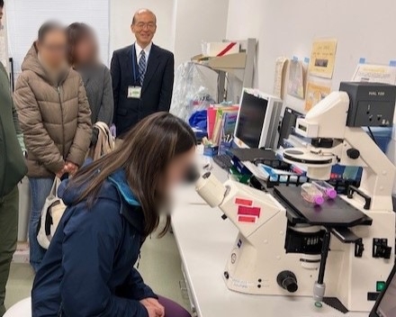 続いて、細胞の培養を行う「実験室」へ。細胞培養用容器に入ったツシマヤマネコなどの培養細胞を顕微鏡で観察しました。違いが分かります…?