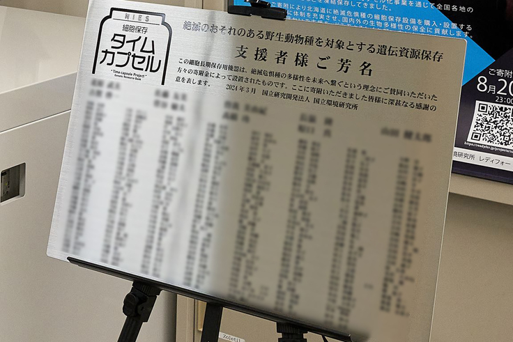 絶滅危惧種の細胞保存は、国立環境研究所のタイムカプセル棟の中で保存していました。今回のご寄付により、沖縄、北海道に設備を設置することで強固なバックアップ体制、そして幅広い研究利用が可能になります!