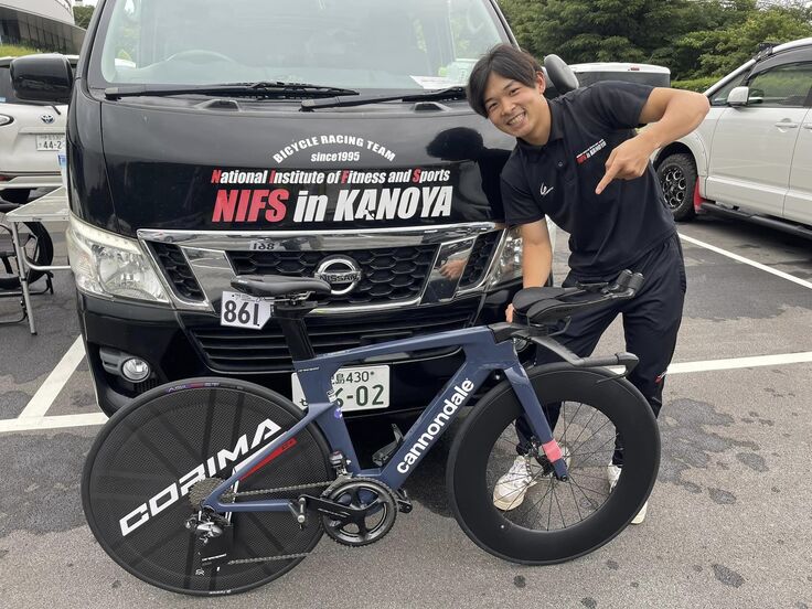 「憧れ」の鹿屋体大に入学し、チームのトレーニング拠点のリンジンベース(ユクサおおすみ海の学校内)での室内トレーニング、鹿屋周辺の地形を生かしたハードなロードトレーニング、根占自転車競技場でのトラックトレーニング、専門家から指導を受けるレジトレ(ウエイト)、鹿屋体大ならではの低酸素トレーニング等によって、一年目からグングン力を付けた実感もあり、専門のロードに加えてトラックでも1㎞TTに於いて1分5秒で走れるまで成長できたと指導陣と仲間に感謝しています。