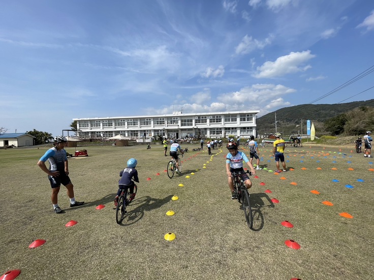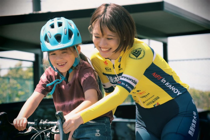 またこのチームは競技力向上だけでなく、ボランティア活動など地域貢献に参加し、人間力も高めてくれます。特に3年生になるとスポーツ指導実習という授業の一環で、小中学生自転車教室(シエルブルーエスポワール・サイクリングアカデミー)の指導を通じ、実践的な指導技術を学べるので今から楽しみです。毎週水曜日に開講される教室には、鹿屋市近辺の小中学校から子ども達(障害のあるお子さんも含みます)が集まるので、自転車の楽しさや安全についてしっかり教育できるよう指導者として私も成長したいと考えています。