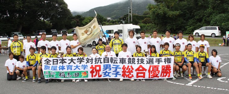 鹿屋体大は、これまで男子が4回、女子が15回の総合優勝を決めています。2013年には最終種目のロードレースで大逆転し男子初優勝を達成、同時に史上初「男女同時同校優勝」を決めました。上野みなみ、塚越さくらが4年生になったこの年の女子チームは、ここまで4年連続の全6種目完全制覇の快挙で10連覇に花を添えました。
