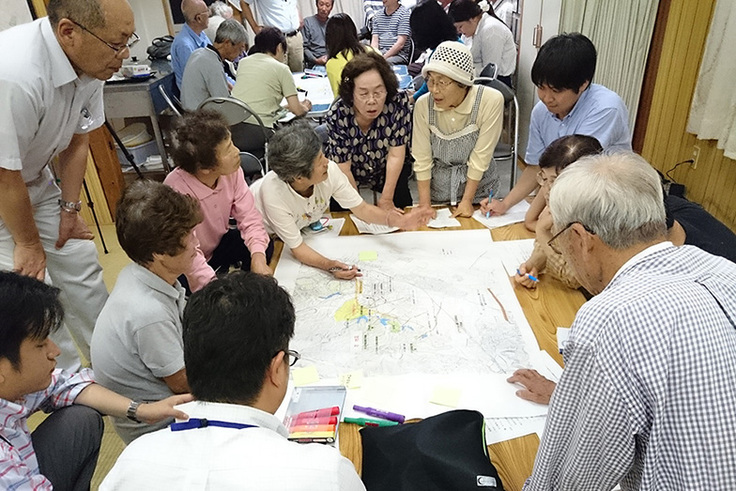 これを、61地区を消防分団を基に分けた283班の小さな単位のワークショップで実施。細分化したことで、近隣住民同士が声をかけ合い、結果として対象地区の全世帯となる3,791戸から回収が完了しています。(ワークショップ参加率63%、カルテ回収率100%)