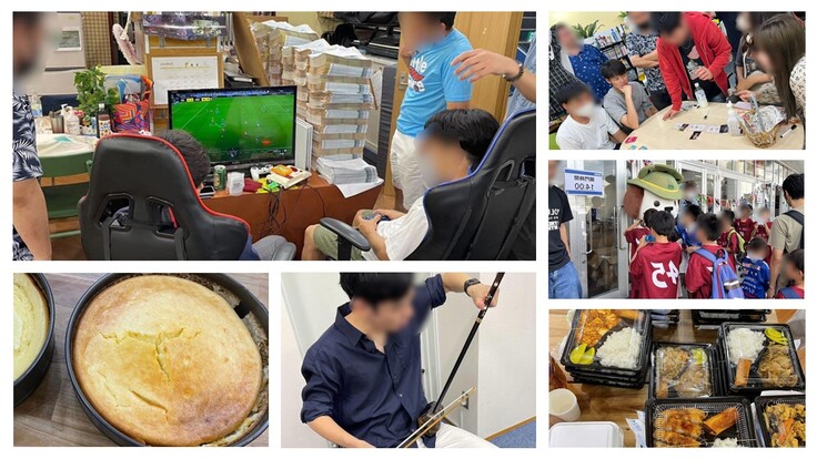 OBも加わり、居場所の重要性を感じられる1日。OBが持参したイナゴの佃煮が話題になり、見た目のグロテスクさに場は盛り上がり‥‥食べられる人が意外と多くて驚きました。見学の方々とボードゲーム「カタカナーシ」や「はぁって言うゲーム」も好評でした。