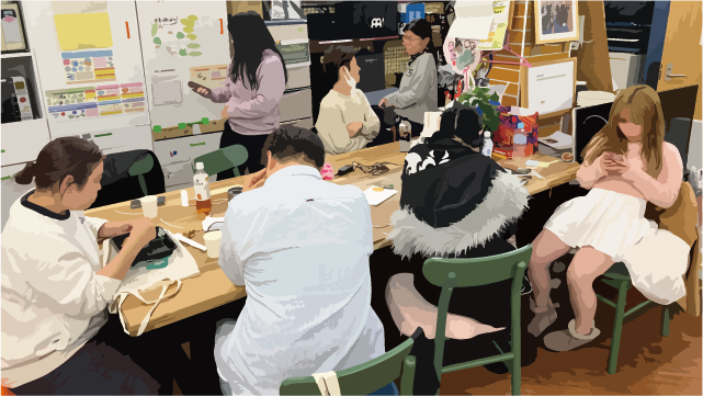 「居場所」は従来の支援とは異なり、就労や復学のような明確な利用目的がなく、ただそこにいることで参加者やスタッフの社会関係を構築する、精神的な拠り所となるような支援です。