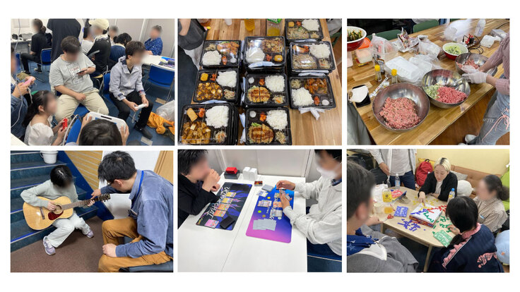 メインフロアでは机を囲んで談笑したり、ボードゲームやPCゲーム、おしゃべりに花が咲き、楽器の練習や白熱の対戦ゲームも!それぞれの時間を自由に楽しんでいました。